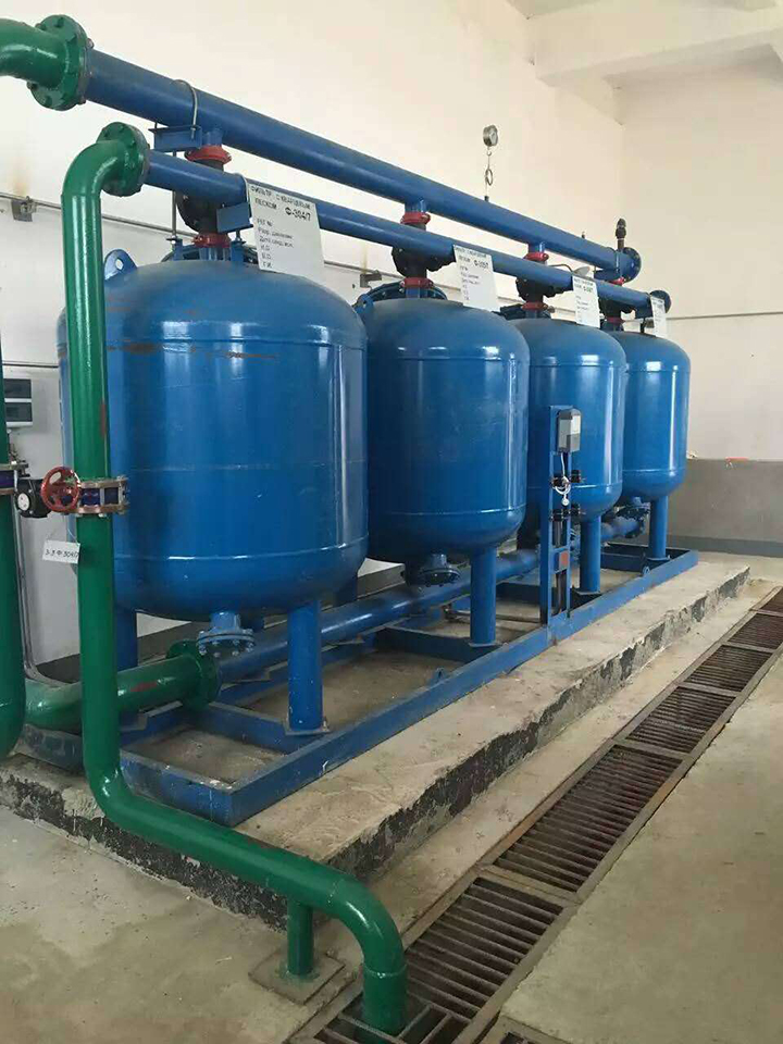 省電:系統(tǒng)自動反沖洗閥,砂過濾罐的反沖洗不是同時進(jìn)行,而是在系統(tǒng)正常運(yùn)轉(zhuǎn)情況下,逐個輪流反沖洗,不需要考慮設(shè)置反沖洗水泵。同時與其他砂過濾設(shè)備相片,其所需要的過濾水泵揚(yáng)程要低6-7m;